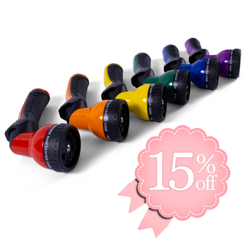 Get comfort, color, and precision under your thumb! This spray gun's pattern options will aid you in any outdoor function involving water. Seamlessly switch between water flows with the quick-change feature. The 9-pattern spray gun is equipped with the one touch valve allowing complete control with just your thumb. The ergonomic design, heavy-duty metal, and vibrant colors will revolutionize the way you look at hand watering.