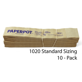55-cell paper pots fit standard 1020 propagation trays which measure 10 x 20 inches. (1020 Trays and Opening Clips are sold separately.)